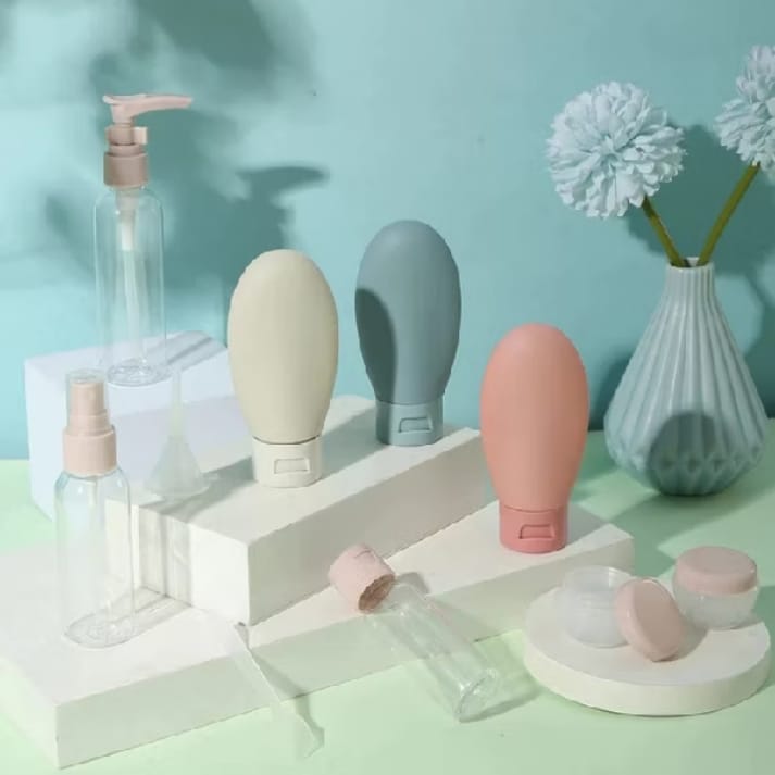 Baratinho e completo para sua higiene pessoal em casa e na rua! ✅ Kit com 11 peças de frascos para spray, shampoo, creme, hidratante e muito mais. Tudo o que você precisa para sua higiene pessoal e ainda vem com estojo transparente pra te ajudar a guardar seu kit. Também é ótima pedida para viagens!