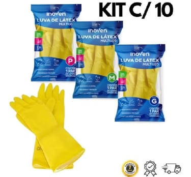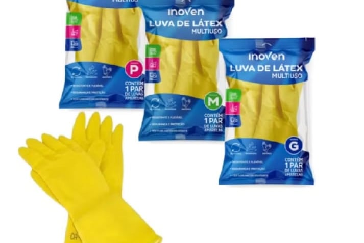 Selecionado para você que procura quantidade, qualidade e proteção, com baixo custo! ✅ Kit de Luvas de Limpeza Látex Multiuso Amarela INOVEN com os tamanhos P, M e G. Confeccionada 100% em látex de borracha natural, possui palma e ponta dos dedos com textura antiderrapante, anatômica, impermeável e reaproveitável.