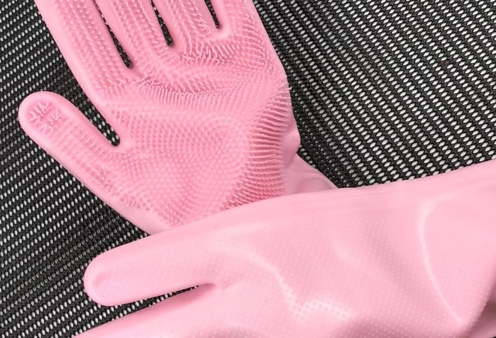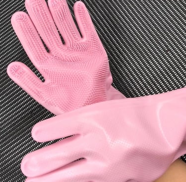 Pra você que quer qualidade, resistência e multifunções! ✅ Par de luvas de silicone com filamentos nas palmas das mãos, utilizados para lavar superfícies e cantinhos com muito mais praticidade e eficiência. Por serem confeccionadas 100% em silicone de uso culinário, podem ser esterilizadas em água quente, micro-ondas ou lava louças.