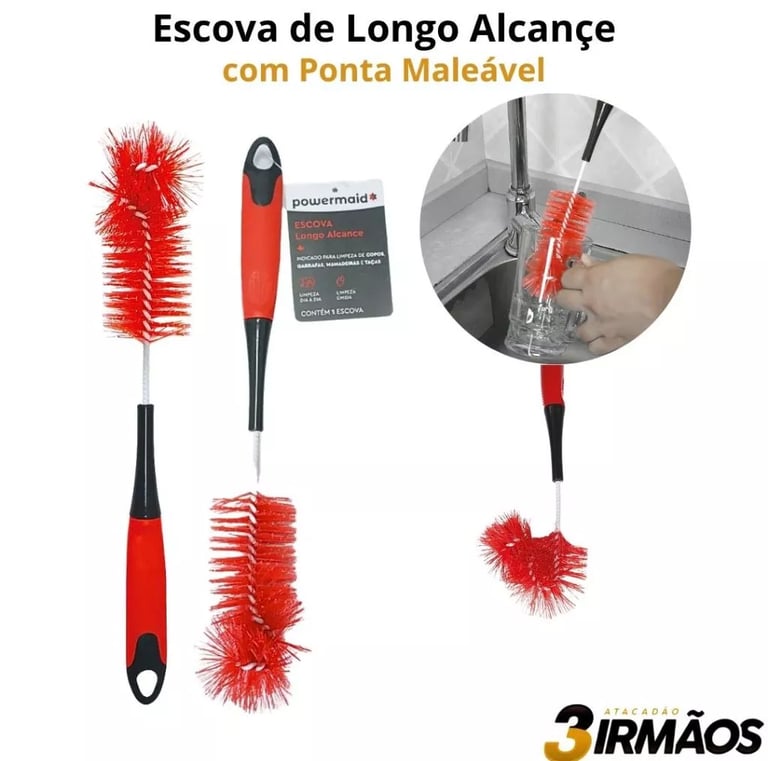Escova com muita praticidade, maleável e baratinha! ✅ Facilite a limpeza de garrafas, mamadeiras e copos com a escova de longo alcance e ponta maleável. Com cerdas resistentes, haste flexível e cabo anatômico emborrachado, essa escova foi desenvolvida para alcançar até os cantos mais difíceis com eficiência.